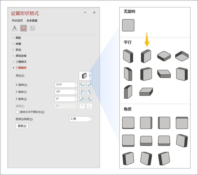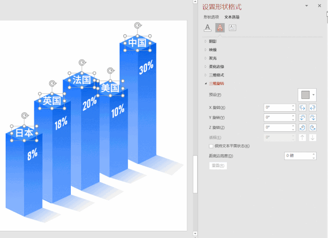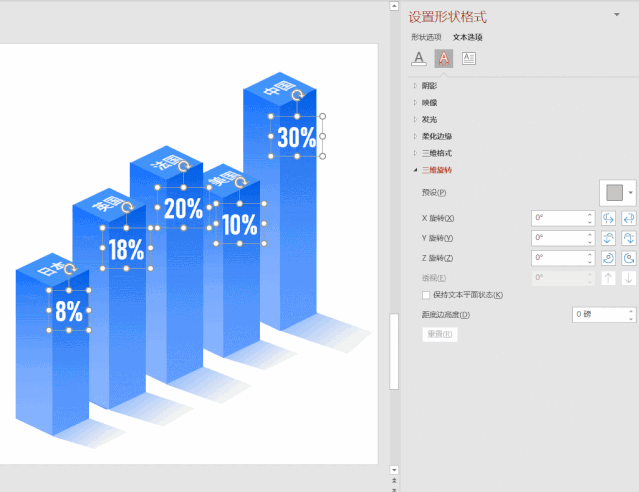 然后,我们添加文字,并且将文字也进行一个三维旋转,就可以得到这样的一个图表。