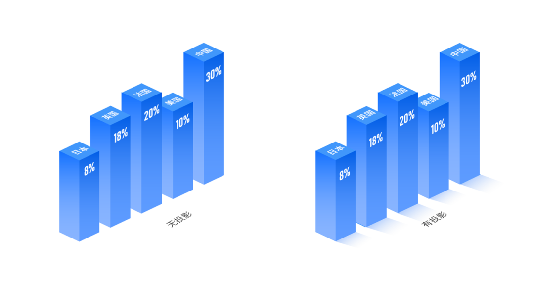 一浅一深,可见3D立体图表,无论是在哪一种背景下,都很好看。