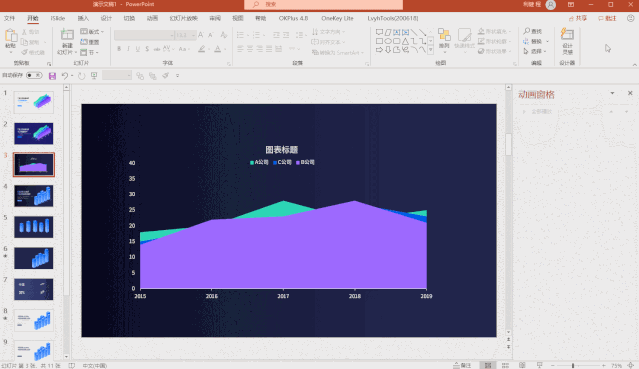 3D图表里面,我们经常还会看到一些面积图,用PPPT也可以制作。