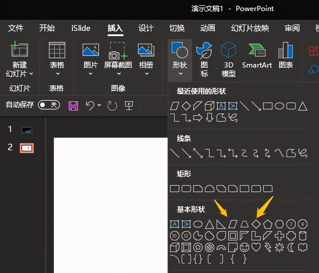 具体的形状就是菱形和平行四边形,这些在形状工具里都可以直接找到。