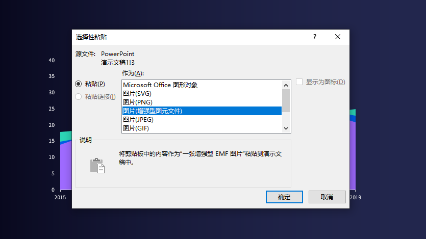 然后,我们复制一下这个面积图,粘贴的时候,进行选择性粘贴。