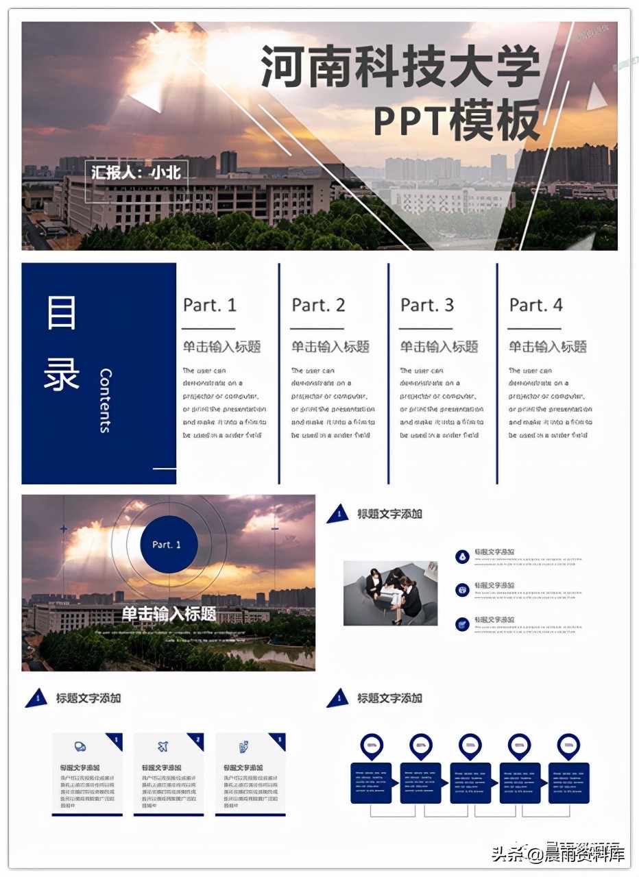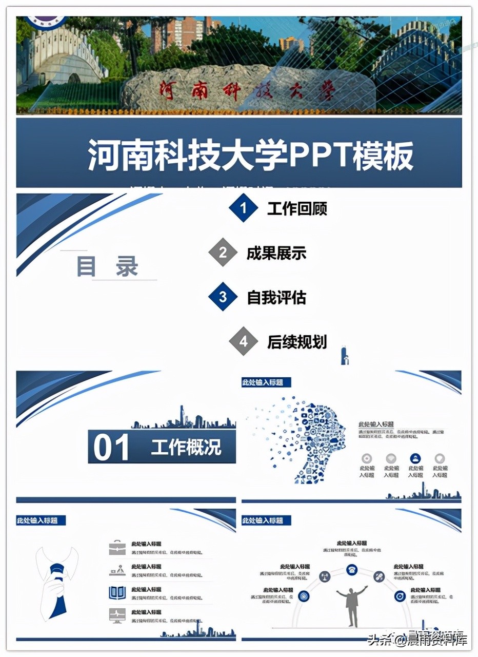 以上是我们为大家准备的河南科技大学专属PPT模板,文中的所有格式都是可编辑的,大家可以上传替换自己喜欢的校园美景,做出具有自己风格的专属PPT哦!
