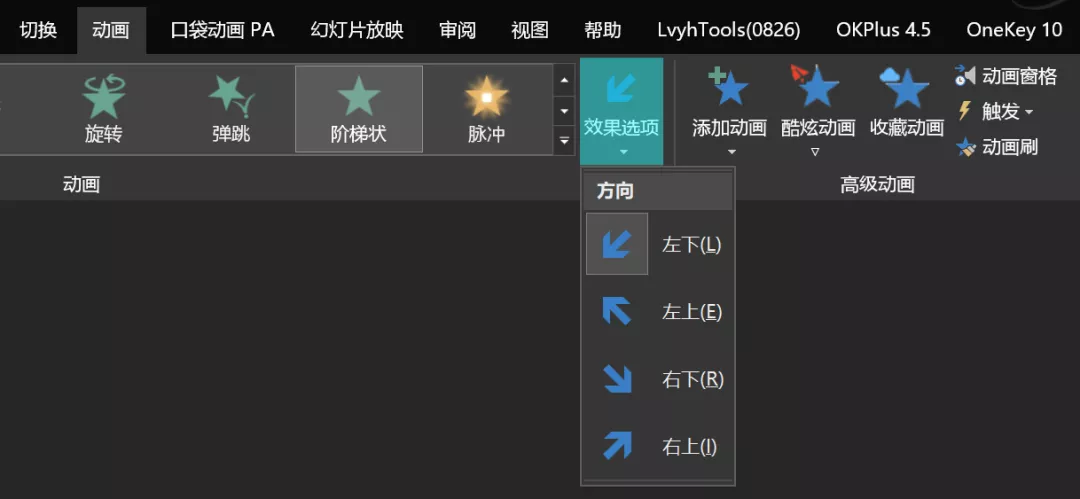 这时候我们就可以把扫光的方向更改成左下-左上-右下-右上了(在效果选项中)