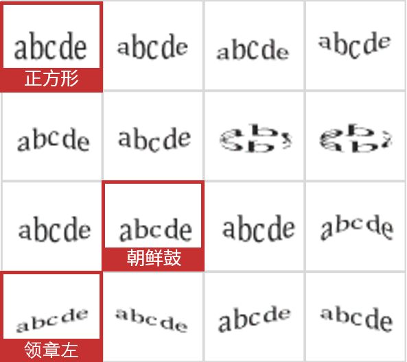在设置文本转换时,同一效果选项,如果设置不同的字体会有不同的效果