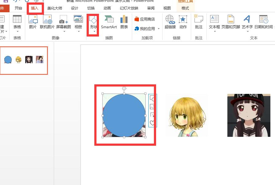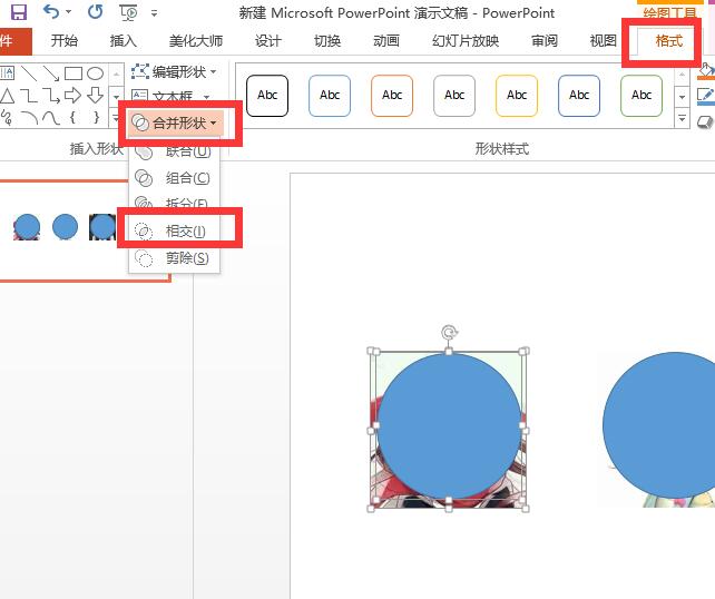 2.圆形照片制作方法新建一页幻灯片首先打开PPT软件,新建一页PPT幻灯片新建一页PPT幻灯片导入需要制作的照片导航栏选择插入--图片--选择本地图片--选中插入导入需要制作的照片插入圆形导航栏选择插入--形状--椭圆(也可以是其他你想制作的形状)--在你要制作的照片上插入形状(形状要比你照片尺寸小,最好刚刚覆盖头像区域)插入圆形合并形状(相交)选中照片和圆形(按住ctrl键再点击可以多选),这里要记住选中的顺序,一定要先选中照片后选中圆形,导航选择格式--合并形状--相交合并形状(相交)完成圆形图片制作按照上面的操作步骤圆形照片就完成了,如果一页PPT里面有多个照片,按照前面的步骤操作即可