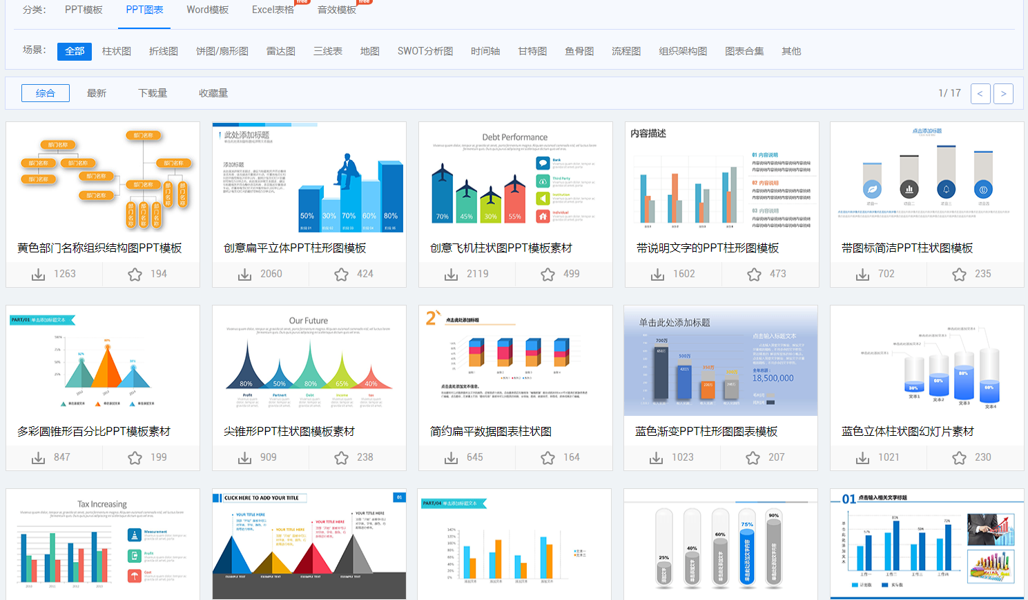 接下来还有PPT图表模板,可以帮助我们更好地展示自己的数据情况,毕竟汇报里面最重要就是要有数据展示啦,这样才能更加有说服力的嘛!