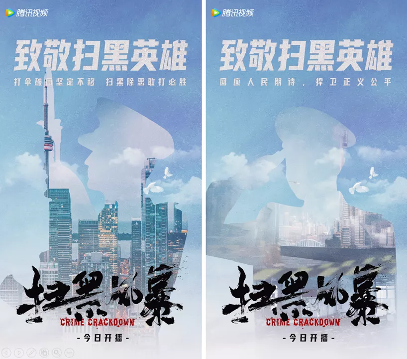 扫黑风暴的海报中,还有两页海报,运用了双重曝光的一些技巧。