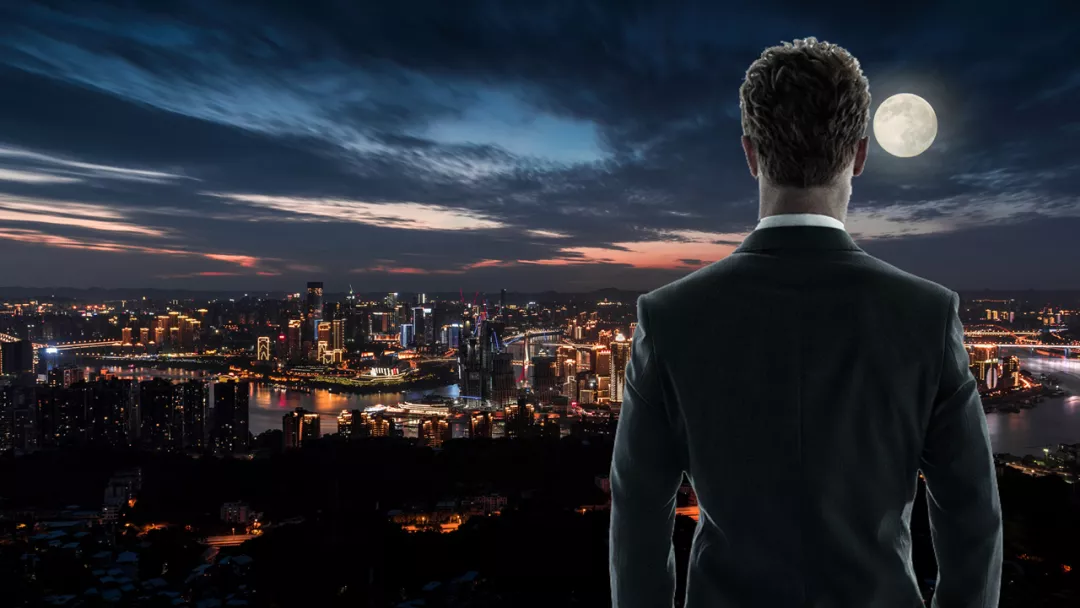 比如,我们准备一张夜景的背景照片,然后准备一个人物的PNG照片。