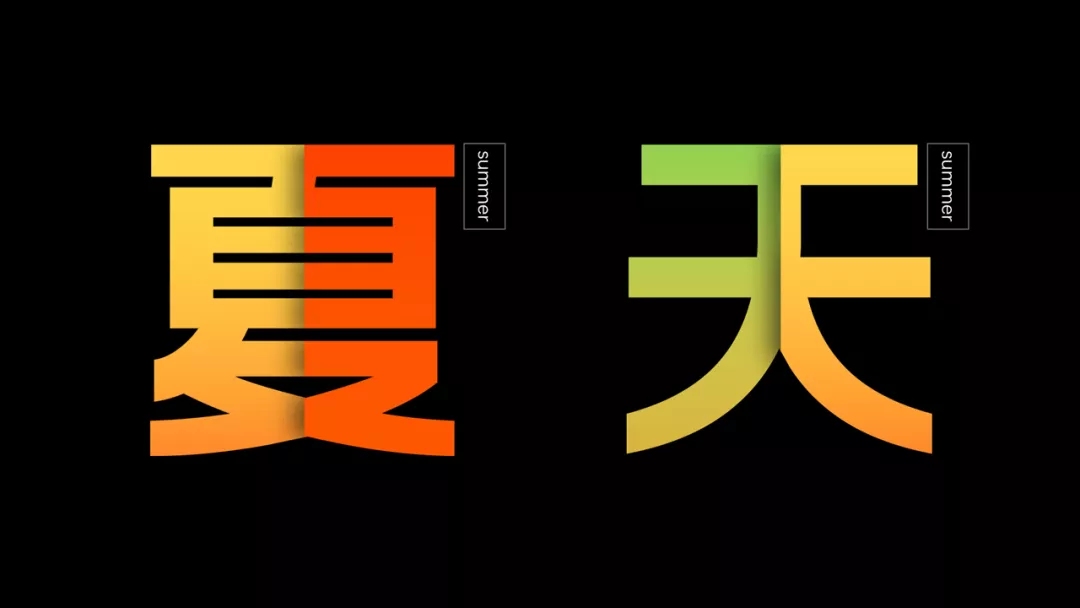 非常简单,我们先一个一个打上文字,然后用布尔运算,将夏天的“夏”字,拆开。