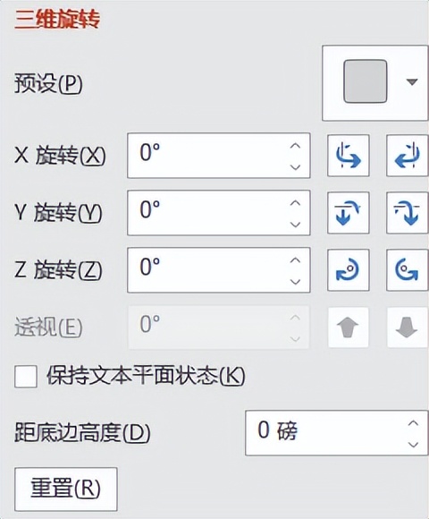 刚才我们都是在“三维格式”中调整,现在我们到下面的“三维旋转”中: