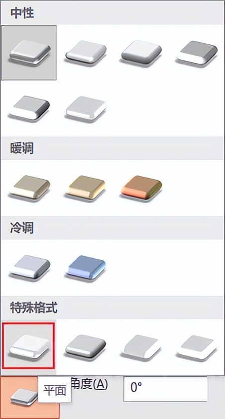 “光源”那里,选择“特殊格式”的第一个“平面”: