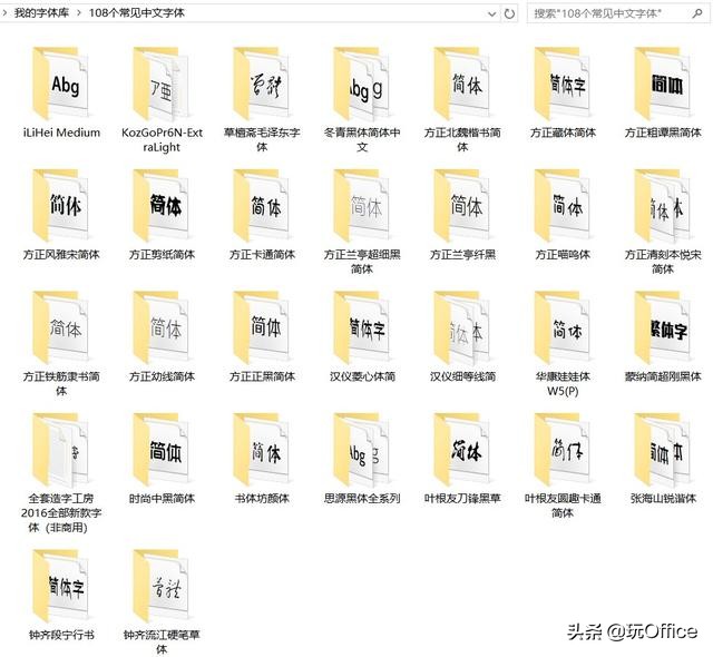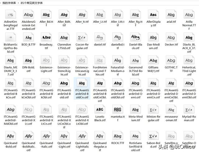 我为大家准备了一个常用字体的字体包,包含了85个常见英文字体和108个常见中文字体。