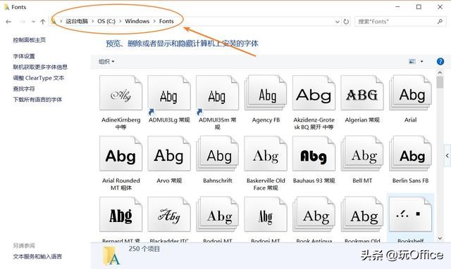 如果需要安装多个字体(字体后缀名为:ttf或otf),那么逐个选择安装就太慢了。正确的做法是打开C盘-Windows-Fonts,然后将需要安装的字体文件复制到这个文件夹下即完成了安装。