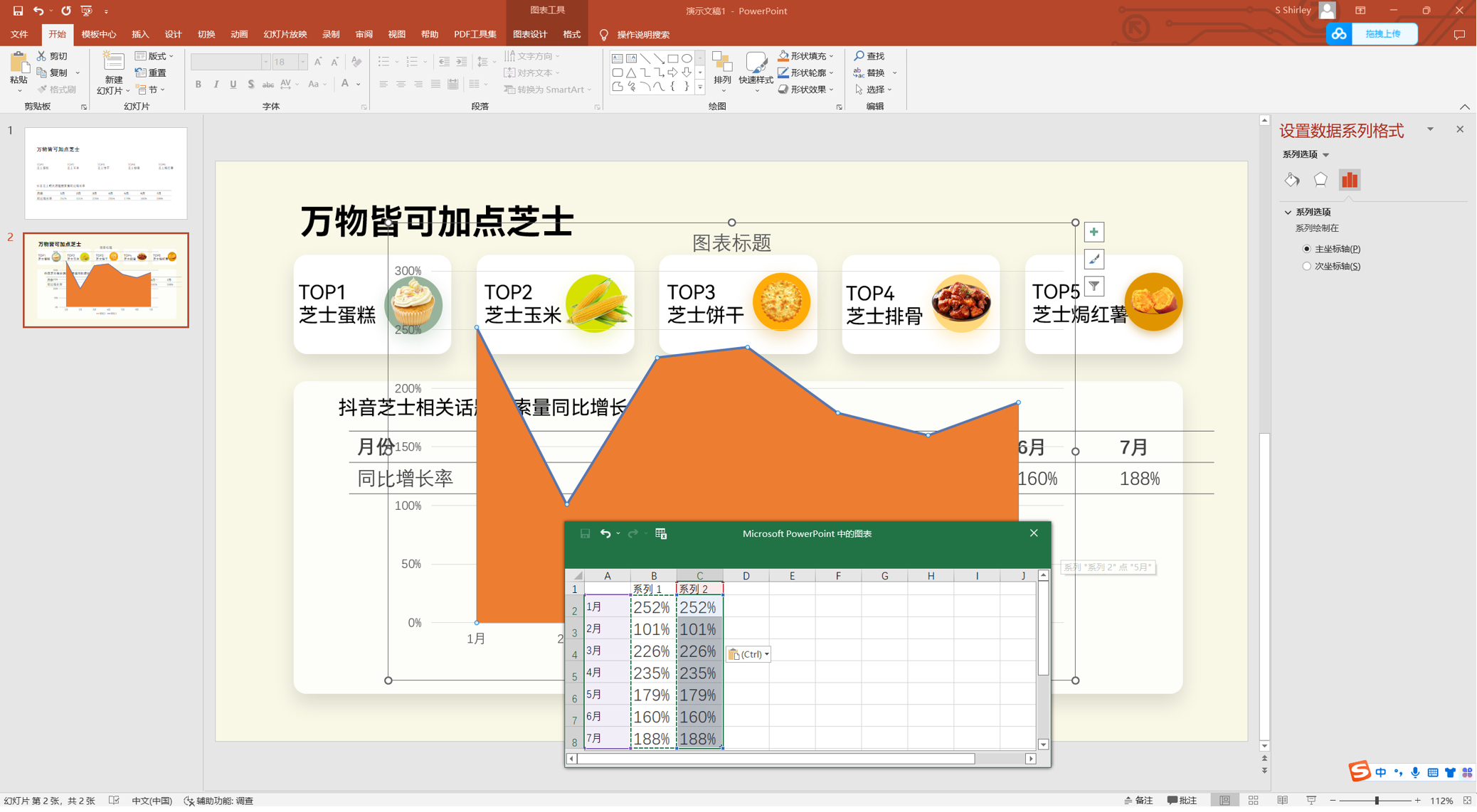 8、删除:“系列3”那一列,根据表格数值设置好表格内容