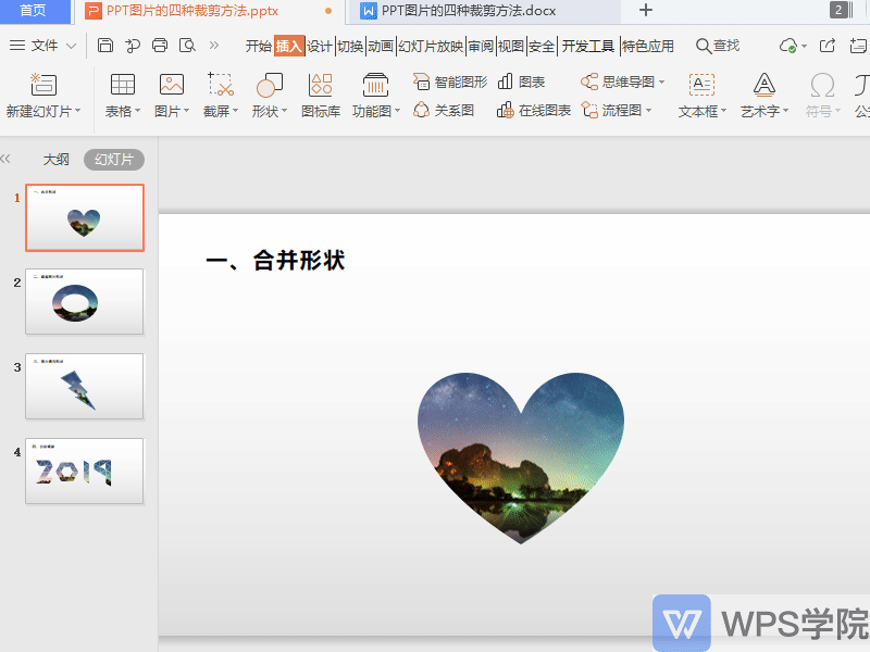 下面就教给大家美化PPT图片的四种裁剪方法:合并形状、裁剪图片形状、图片填充形状和创意裁剪。