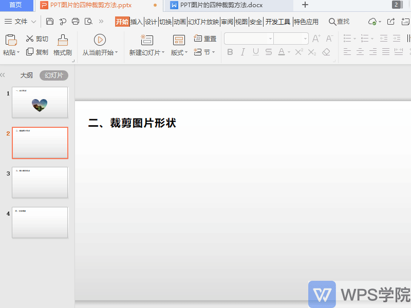 点击图片工具-裁剪,在此处可以选择按照形状裁剪和按照比例裁剪。