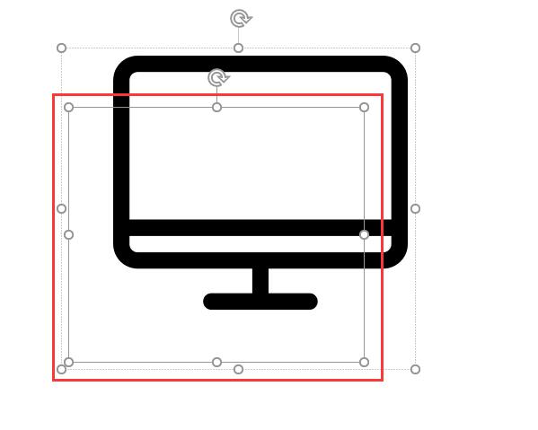 在图标旁边空白部分双击,你会发现选中了图标后面的一个形状,拖动一下,如下图: