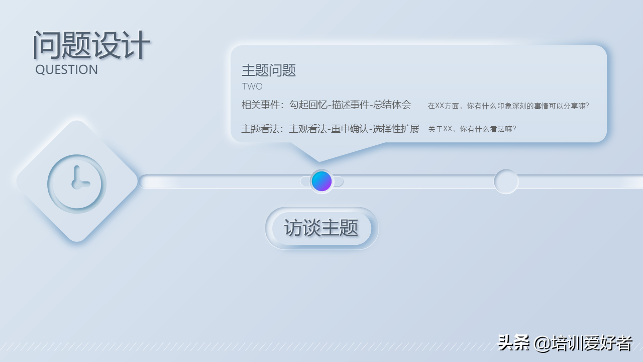 需要准备的问题包括:基于主题的问题设计、开场铺垫、主题问题、收尾升华