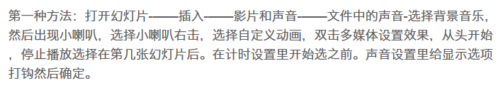 一、插入背景音乐方法一:方法二:二、如何删除背景音乐?这个还是比较简单吧!