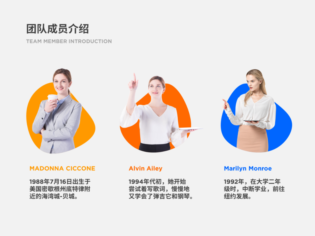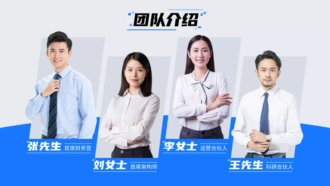 先试着运用到我们的PPT页面中,比如团队人物介绍:
