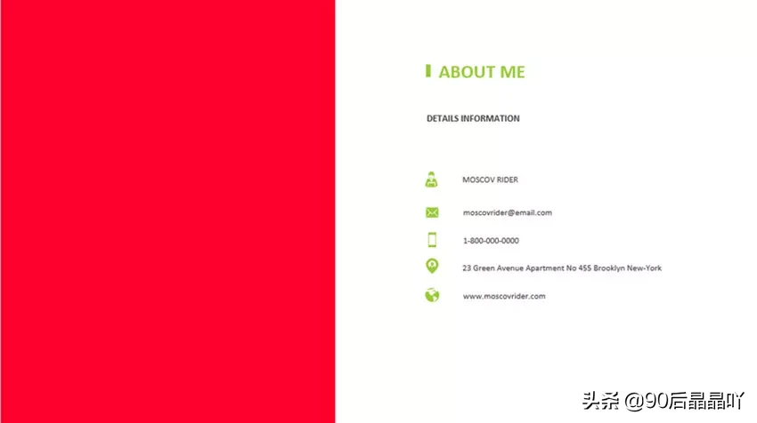 一个简单而时尚的PowerPoint简历模板,其中包含引人注目的联系信息部分