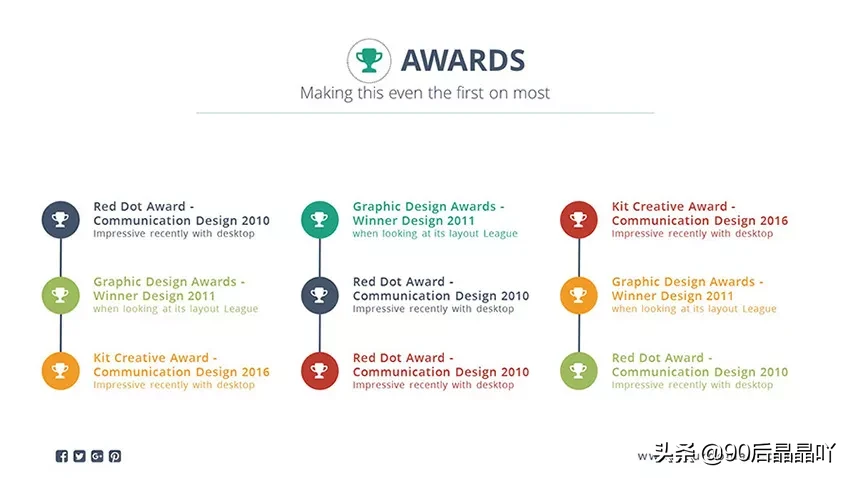 PowerPoint简历中的这张幻灯片很好地展示了奖励列表。
