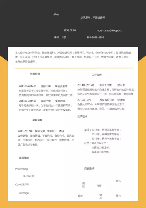 简历是设计的一部分,但大多行业比较保守,不需要过重的设计感。