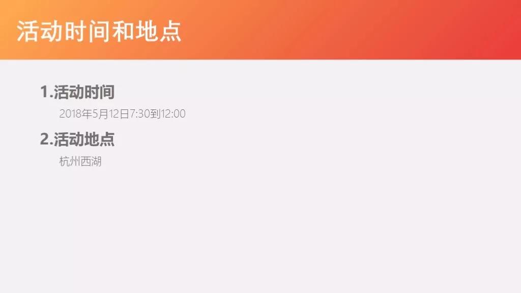 那具体怎么去做呢?我们先来看这页内容页,由于我们的主题颜色是橙色的,那么我们就可以先把标题的颜色设置为橙色,使其与正文的颜色构成一组色彩上的对比关系