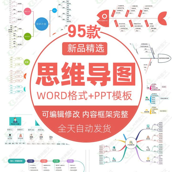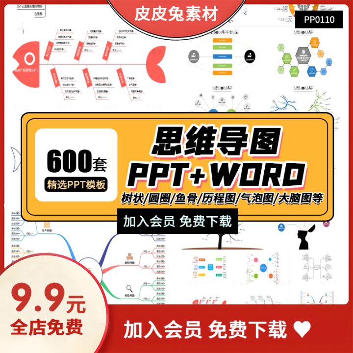 思维导图PPT模板对比多边形大脑树图形状数据图表WORD