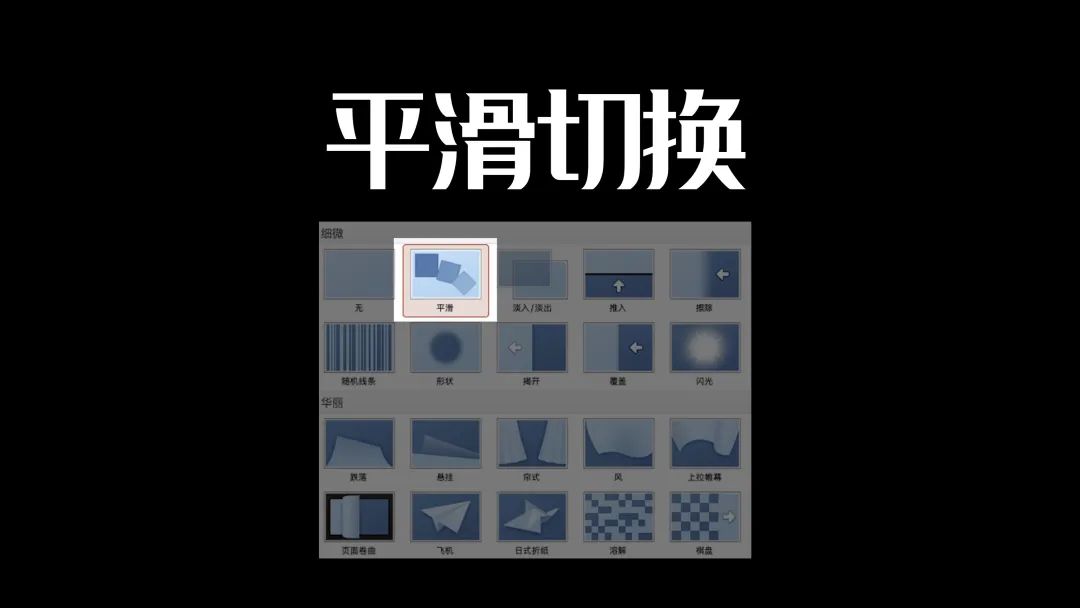 第七步:最后给所有幻灯片添加一个万能的【平滑切换】的效果。