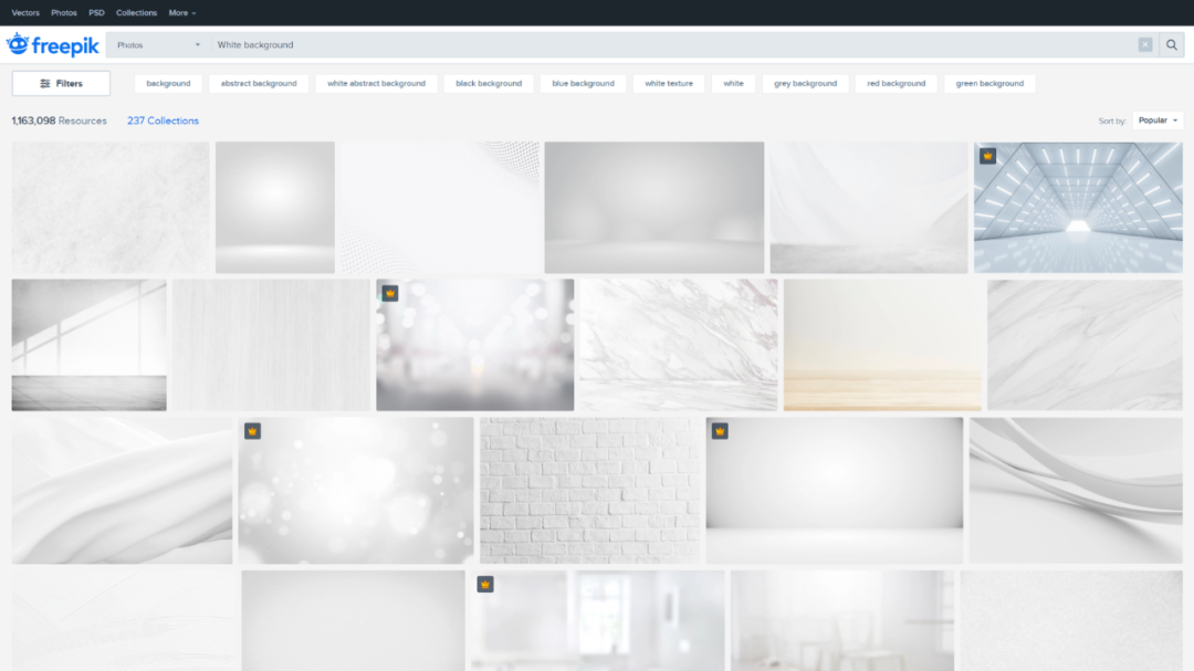关于该如何搜索这类图片,大家可以去各大免费图库网站中,输入“white background”,就能找到很多类似的: