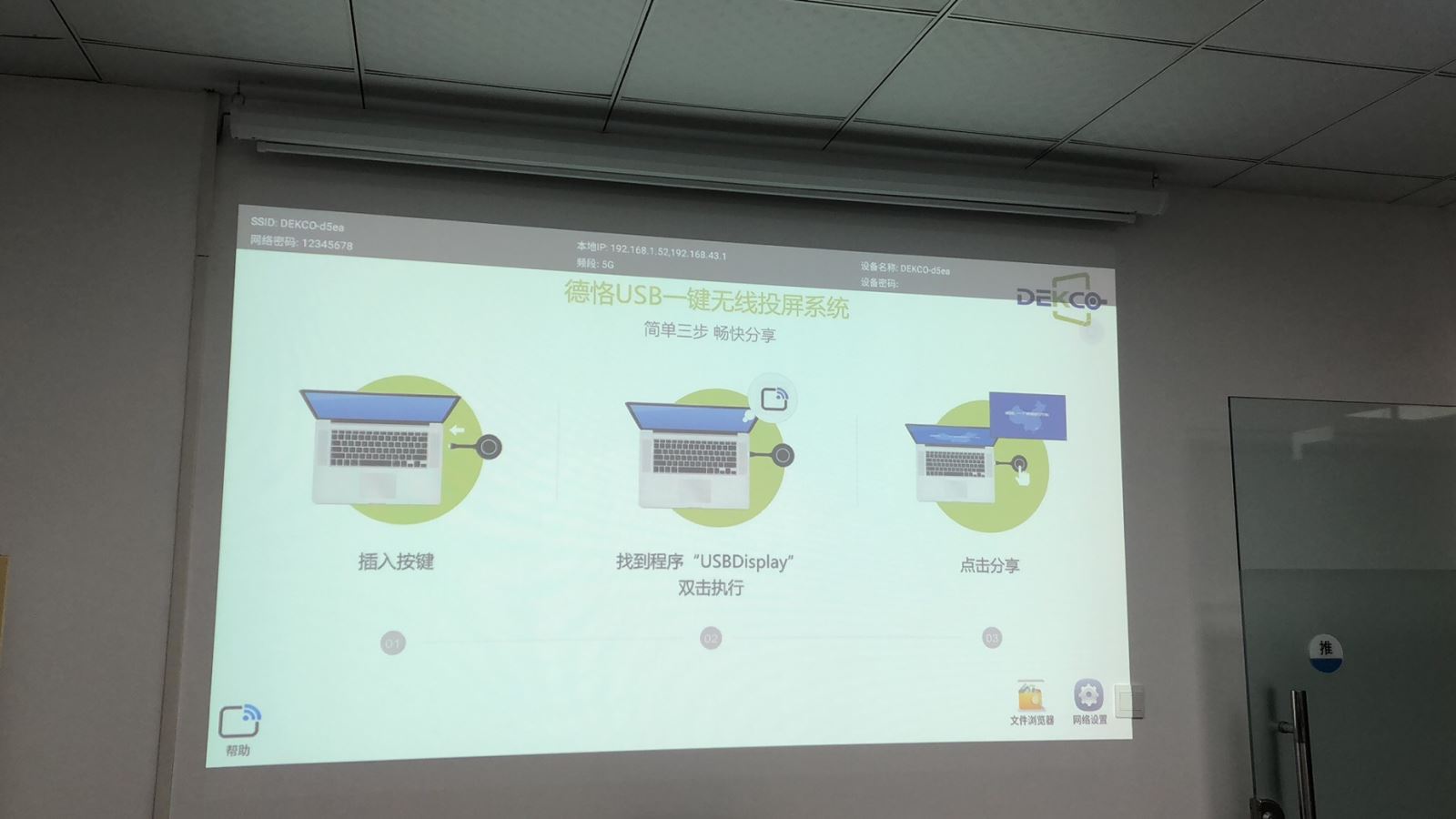 也会有用户向小编咨询,投影机可以结合德恪USB一键无线投屏使用吗?因为绝大多数企业用户的会议室还是采用的投影机显示,所以这次小编还给大家补齐了最新录制的实操视频,结合会议室投影机拍摄,一起去看看吧: