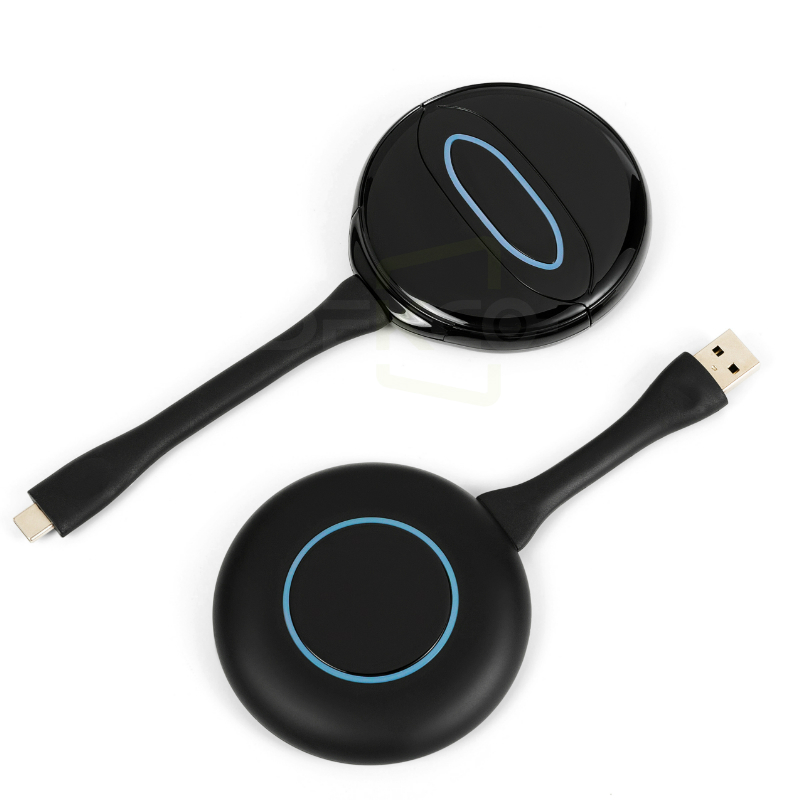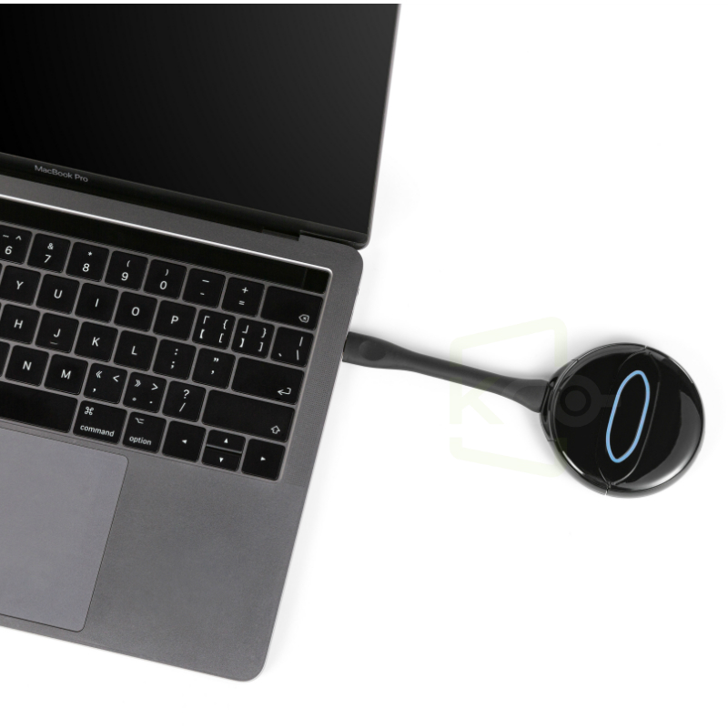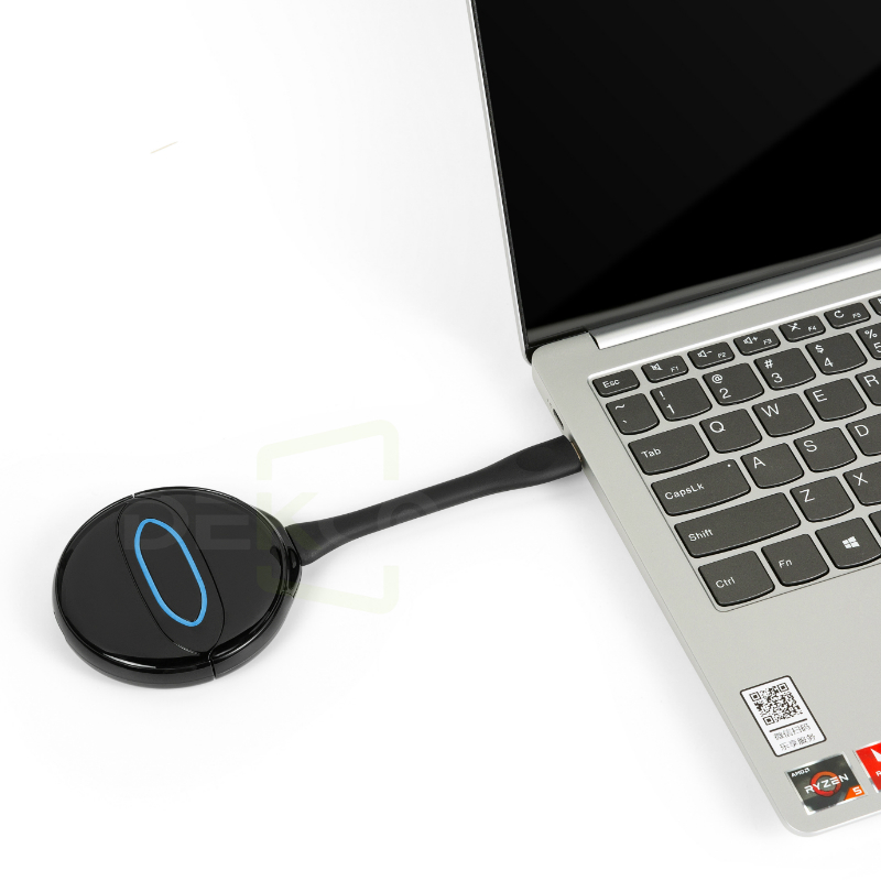 上面的实操视频中,大家可以看到,笔记本电脑在会议室无线投屏的过程中,笔记本电脑与电视之间并没有连接信号线,而是在笔记本的USB接口插入了一支圆形状的按键,我们叫“USB投屏按键:使用起来非常简单,不需要做任何设置,不需要安装任何软件,也不需要连网,只需简单三步即可完成无线投屏展示。