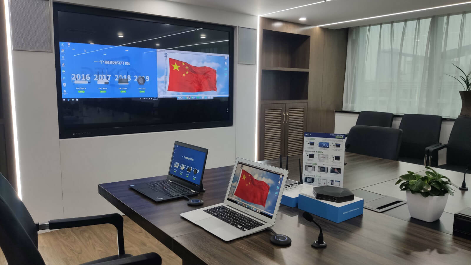 商务办公会议应用时,如何快速便捷得将笔记本电脑画面通过无线的方式投屏在显示终端上显示,可以说是每家公司都要面临的一个问题,按照传统会议模式,您的会议室每次会议都需要花大量的时间提前准备,想要把笔记本电脑或手机还有平板的信号画面投屏到电视或者投影幕上,发现桌面上杂乱不堪的信号线甚至转接头,竟然没有一个能用上,还大大的影响了整个会议室的整洁美观,会议桌杂乱不堪。