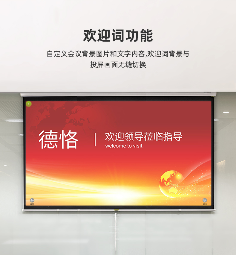 考虑到商务会议场景的特殊性,“欢迎小应用”,更为企业会议应用场景贴心准备。接待客人的会议,欢迎词必不可少。欢迎小应用为用户轻松搭建欢迎界面。相信您看了下面这个视频,一定能将笔记本无线投屏与欢迎词应用很好的结合起来。