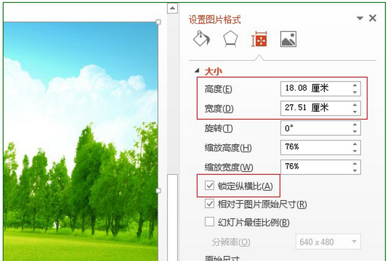 9.锁定纵横比可以保证改变图片大小的过程不变形,你改变图片长或宽的数值,另一边就会跟着改变。