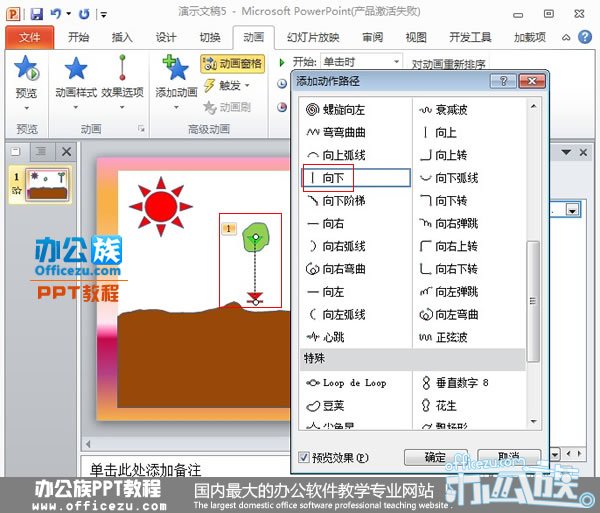 6.五、给种子设定动作路径,单击动画,选择向下