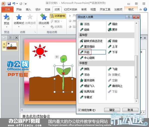 1.大家在观看科技自然类节目的时候,是不是对种子发芽的过程感到无比惊讶呢?谁也想不到,小小的种子里面居然蕴含如此巨大的力量,破土而出,岩石也能推开,这,或许就是生命的力量吧!PowerPoint2010里面的自定义动画功能也能够演示种子发芽过程,大家不妨一起做做看。