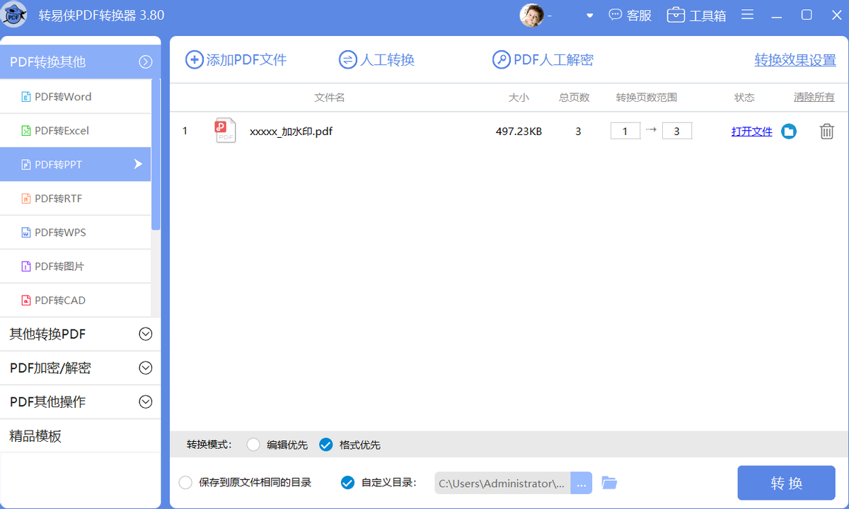 7.面对每天都需要处理的文档格式转换任务,我们可以选择专业的PDF转换软件来处理我们的日常工作所需,比如转易侠PDF转换器,它具有很多转换功能,可以完美支持PDF转Word、Excel、PPT、CAD、图片等格式转换。