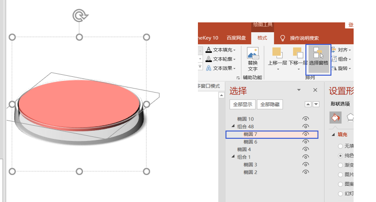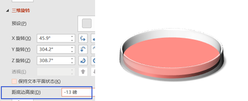 直接双击选中内部红色溶液物体(或菜单栏-格式-选择窗格,再选亦可),在三维旋转选项中更改距底边高度为-13 磅。