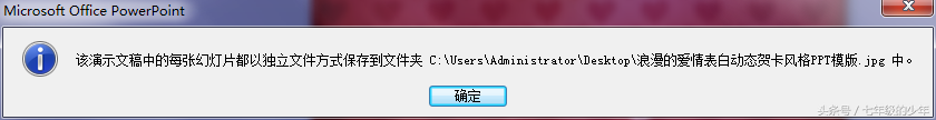 第三步,保存后会弹出以下对话框,选择所有幻灯片,或者单张幻灯片。