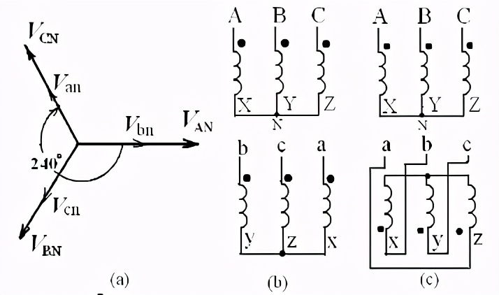三相变压器的联接方式和联结组别的判定方法