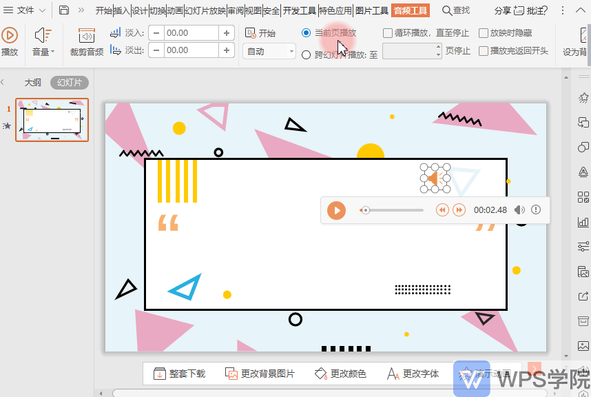 6.■ 设置“当前页播放”即音频只在此页放映时播放,切换下一页自动停止