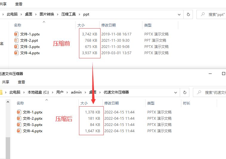 10.步骤4,我们将压缩后的ppt文件与压缩前的进行对比,可以明显看到压缩后的ppt文件比压缩前要小很多