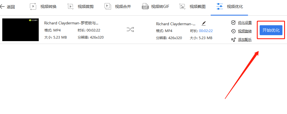 9.5、最后点击文件右侧“开始优化”,等待文件处理完成即可