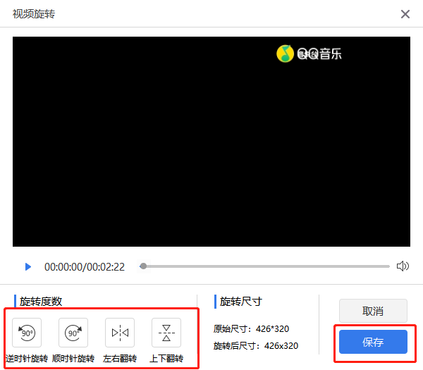 8.4、在弹窗中选择“旋转度数”(逆时针旋转/顺时针翻转/左右翻转/上下翻转),旋转后,点击“保存”