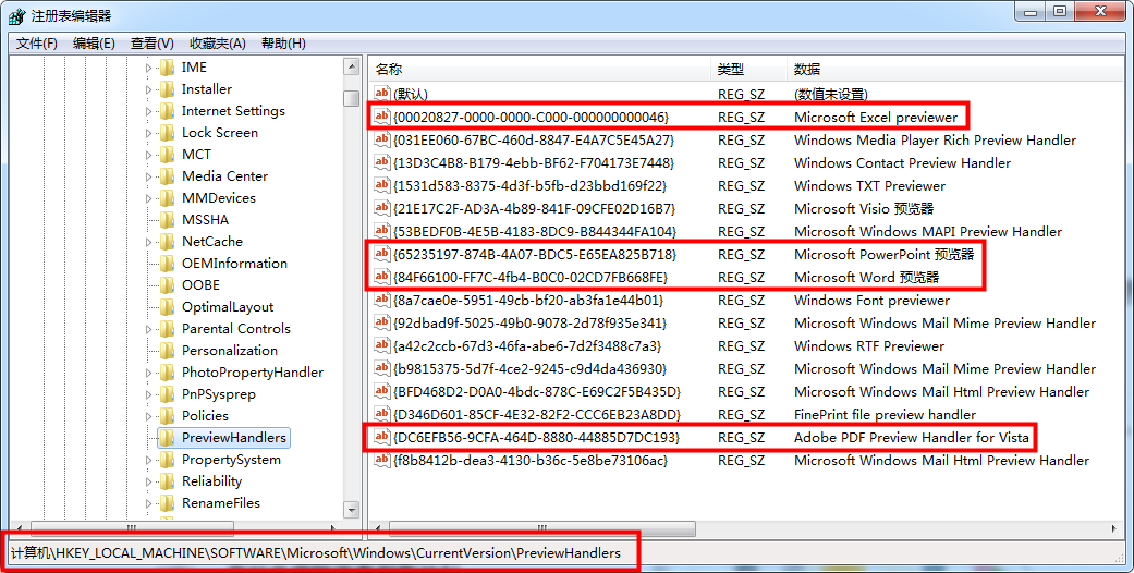 1.在资源管理器中打开预览窗口,浏览WORD、EXCEL等内容就不必打开文件了,很方便,但是很多电脑的预览窗口无法正常显示,可以按下面的方法试一下:1.按WINDOWS徽标键+R,调出运行窗口,输入regedit,回车,调出注册表编辑器;2.找到以下键,例如HKEY_CLASSES_ROOT.xlsxShellEx{8895b1c6-b41f-4c1c-a562-0d564250836f}3.把对应的类型文件的键值修改为以下键值即可:.xls和.xlsx的“数值数据”修改为 {00020827-0000-0000-C000-000000000046}.doc和.docx的“数值数据”修改为 {84F66100-FF7C-4fb4-B0C0-02CD7FB668FE}.pdf的“数值数据”修改为{DC6EFB56-9CFA-464D-8880-44885D7DC193}.ppt和.pptx的“数值数据”修改为 {65235197-874B-4A07-BDC5-E65EA825B718} 4.修改完成后关闭再打开预览窗口,如果可以正常显示就行了,否则再打开HKEY_LOCAL_MACHINESOFTWAREMicrosoftWindowsCurrentVersionPreviewHandlers参照下图设置一下