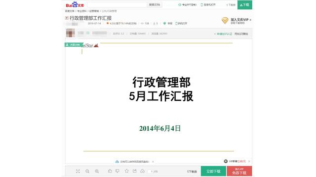 本次的内容是以百度上文库里面找到的这么一份PPT的工作汇报的文件来作为范本,给大家简单的讲解一下,怎么去制作一个简约大气的封面。那么PPT的封面是长这个样子的。
