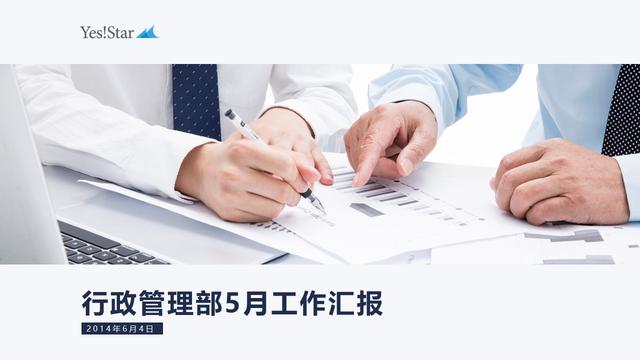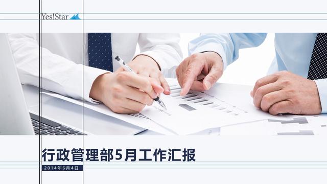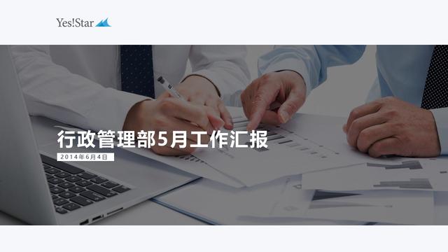 为了防止演示的时候出现问题,页面中的字体全都选用了微软雅黑。这样一来,只要都是在Windows系统下使用我们就可以不用嵌入字体了。而作为企业内部的工作汇报来说,也不存在商用版权的问题。最后,把所有的参考线辅助线都去掉,我们就会得到一个简约大气的,商务型PPT的封面。