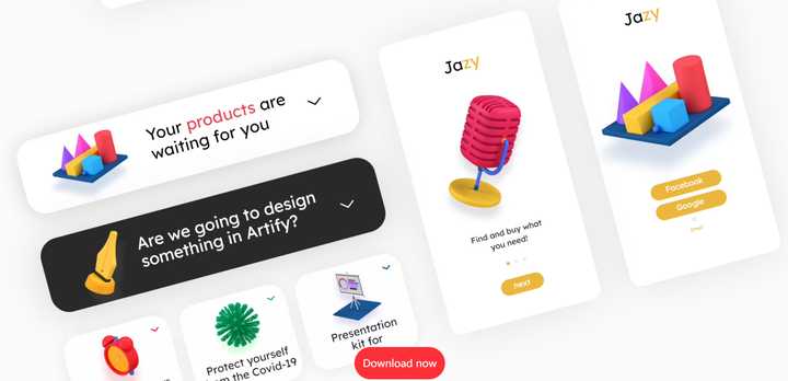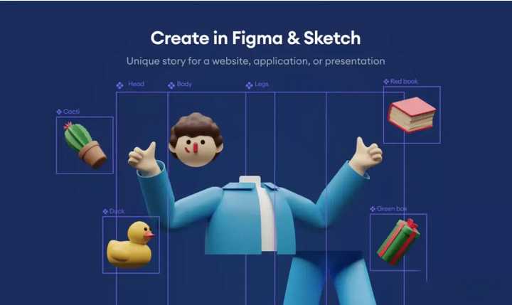 这个网站提供 .BLEND 格式的 3D 模型和 PNG 格式的组件,你可以做 Figma 和 Sketch 中进行任意的组合,理论上也支持 Adobe XD,因为 Adobe XD 能直接打开 Sketch 文件使用。
